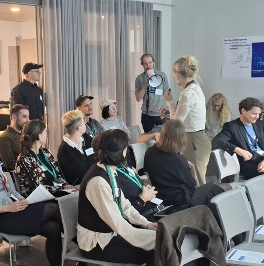 After the enactment, we together reflected on our emotional experiences. One colleague noted during the discussion: "I think I could almost feel another person's feelings." She meant that by stepping into a particular role, a person gains access to a specific emotional perspective. Another colleague mentioned: "As a citizen, I felt the particular orders I was expected to comply with" and another remarked: "I realised that I actually was mistrusting the moderator, because I asked myself: since she is hired by the municipality, is she now part of the government, or as impartial as she claims to be?" It became clear that it was not only emotions but also the setting and the tools that shaped the experience. One participant observed: "The whole space was designed for presenting; I wasn't listened to at all." Another added: "The use of the microphone, with which the moderator managed the Q&A, determined who controlled the room; the devices created differences right from the start." Christina as the moderator reflected: "When the activist pulled out his megaphone, I worried I'd lose control of the Q&A, which I was responsible for keeping calm. But by insisting on the use my microphone, explaining that the megaphone would drown out other voices, and with the policymaker making a gesture that signaled he couldn't understand anything in the noise, the activist agreed and set the megaphone down. In that moment, I suddenly realised how much authority I had."